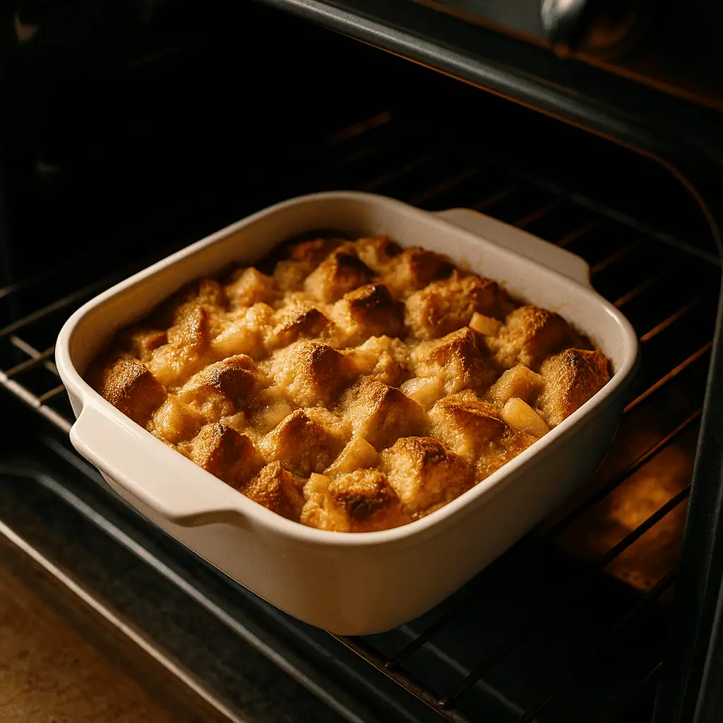 3. Soak: Let sit 10β15 minutes so bread absorbs custard. Press gently with a spoon.
