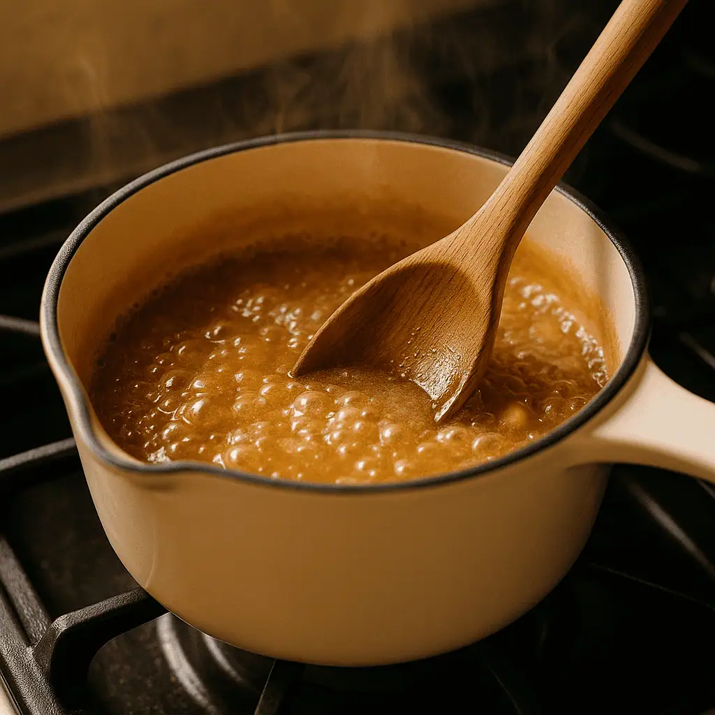 5. Make caramel: While pudding bakes, heat brown sugar, butter, and cream in a saucepan. Simmer 3β5 minutes. Remove from heat, stir in salt and vanilla.