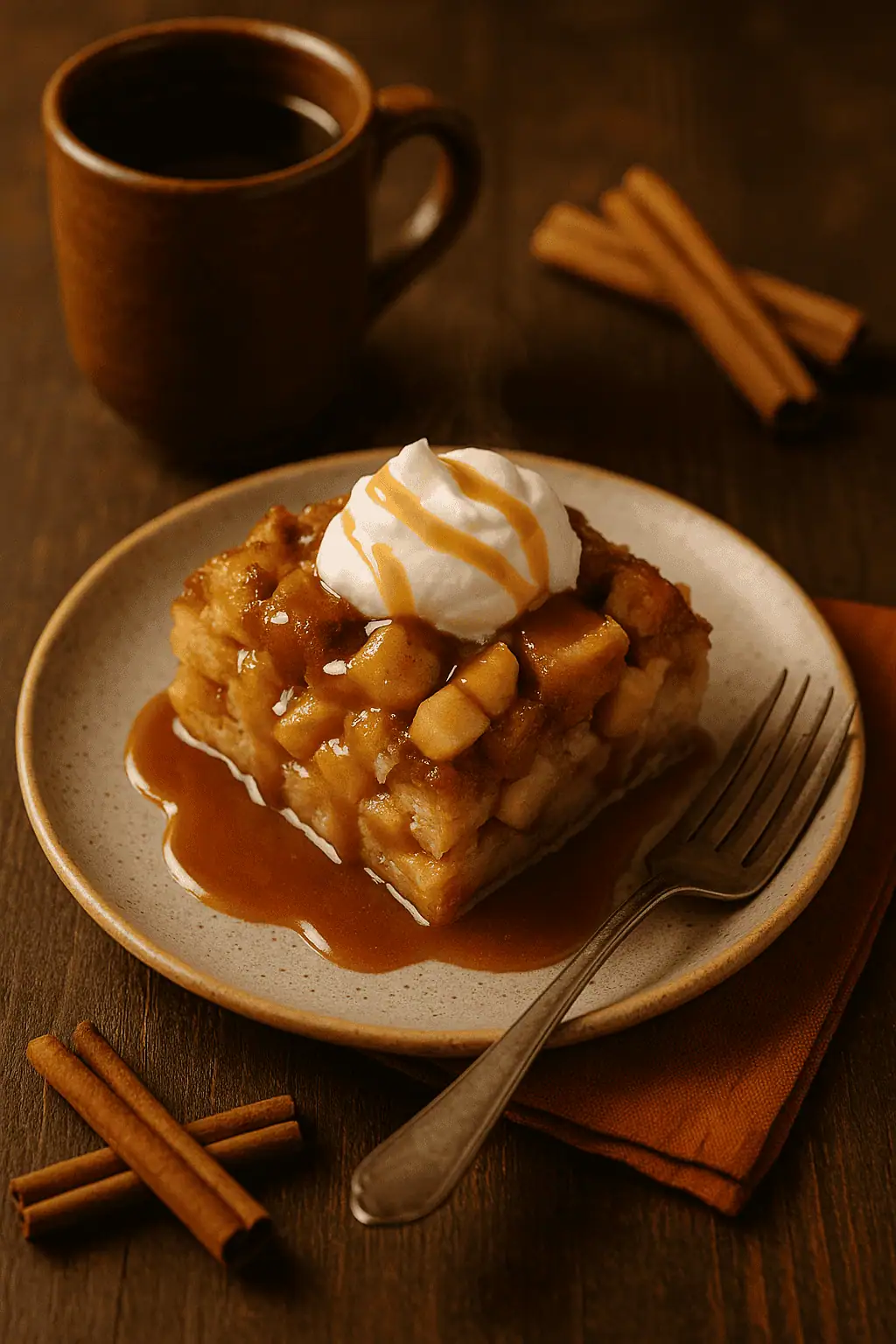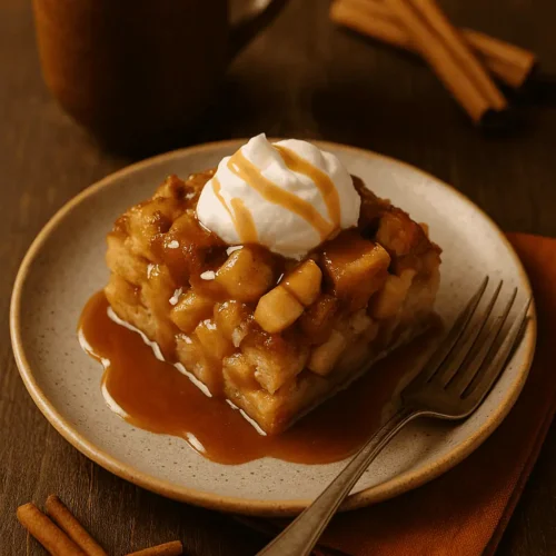 This is the cozy hug of desserts β warm, custardy bread pudding studded with tender apples, cinnamon spice, and finished with the dreamiest caramel drizzle. Itβs comfort food with a fall twist that makes your kitchen smell like a bakery.