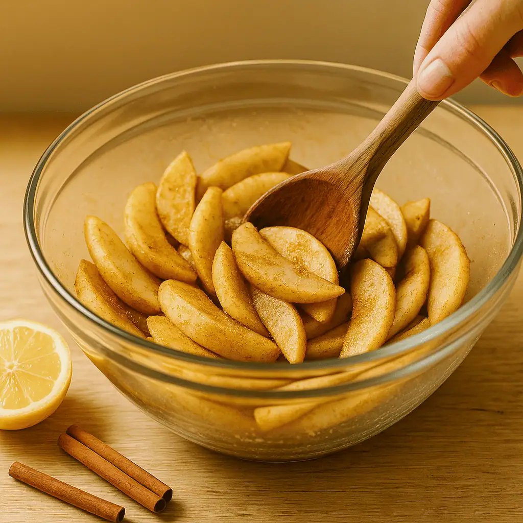 6. Bake: At 400°F for 35–40 minutes or until crust is golden and apples are tender.