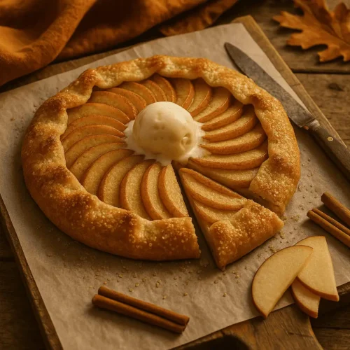This is your no-stress answer to apple pie cravings — a rustic, golden-brown apple galette with zero fuss and all the flavor. It’s tender, flaky, and casually gorgeous with spiraled apples, buttery edges, and a shimmer of sugar.