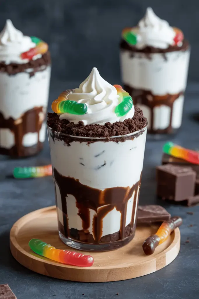 - Spooky Version: Add a chocolate cookie crumble layer at the bottom for “dirt.”