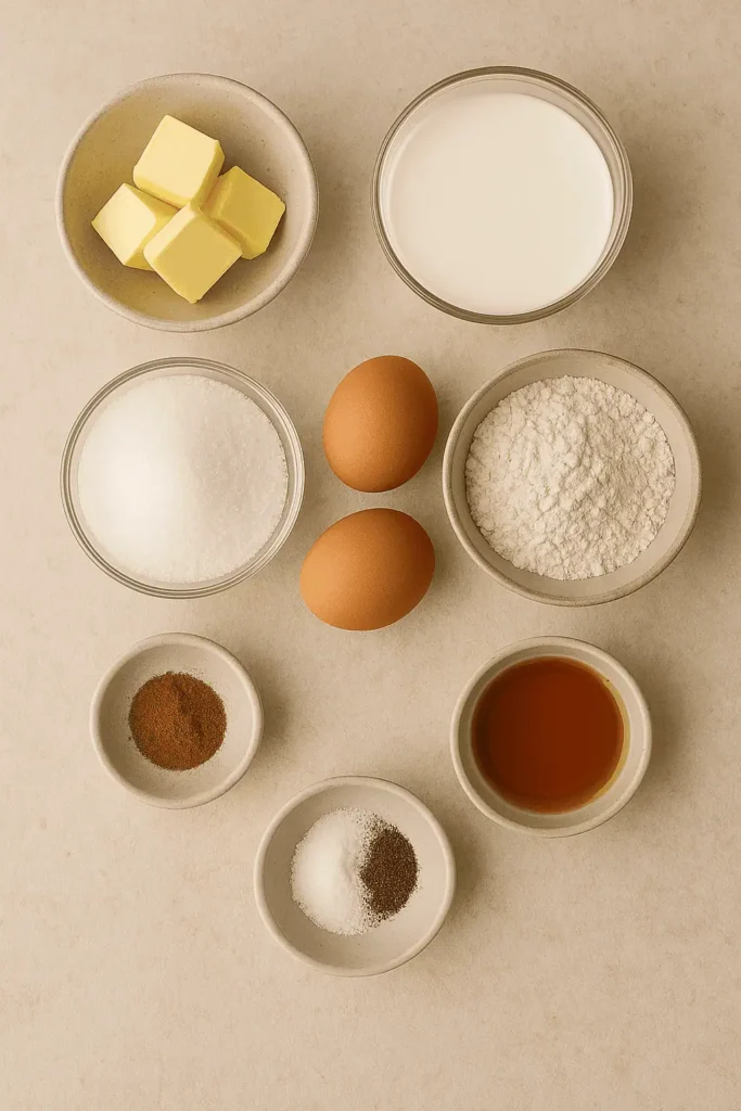 1️⃣ In a small saucepan, heat milk & butter until just steaming. Set aside to cool slightly.