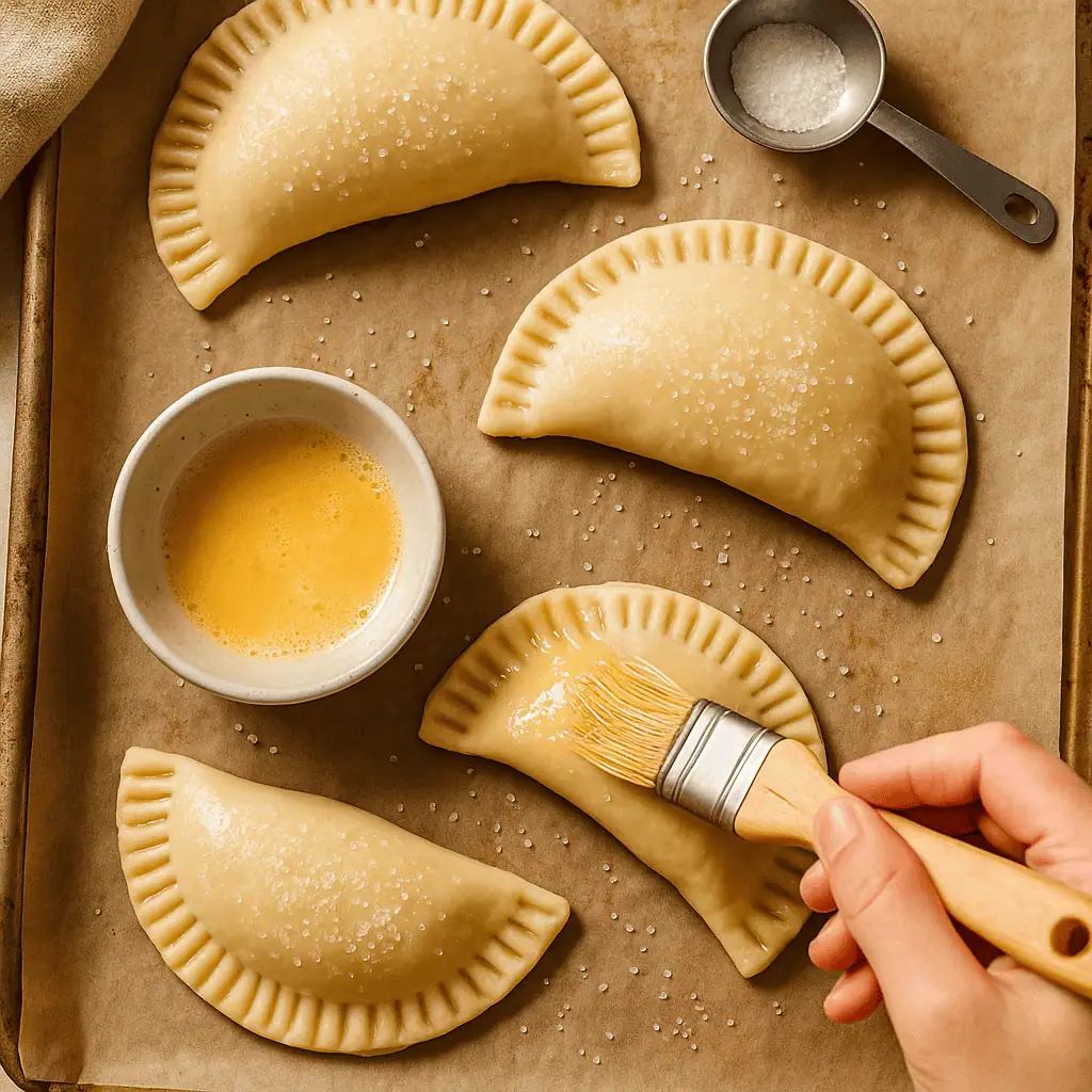 5. Chill & bake: Freeze pies 10 mins. Preheat oven to 375Β°F (190Β°C). Brush with egg wash and sprinkle with coarse sugar. Bake 22β26 mins or until golden brown.