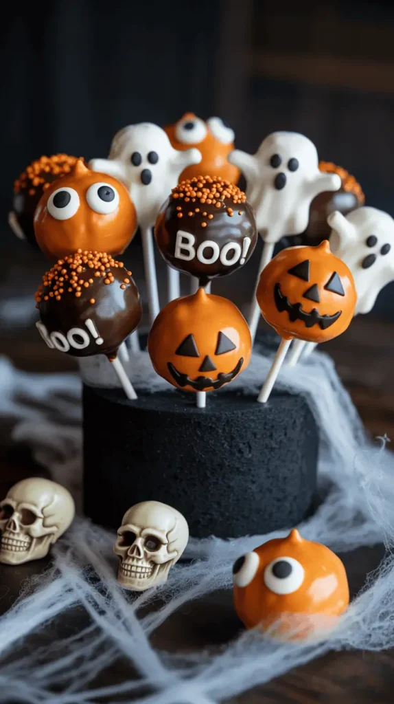- π Halloween Pops: Dip in orange candy melts and use mini candy eyes or Halloween-themed sprinkles.