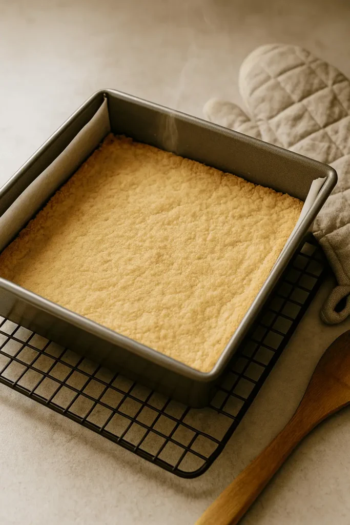 - Make the Shortbread Base: In a bowl, cream butter and sugar until fluffy. Add salt and flour, mixing until dough forms. Press evenly into pan. Bake for 20-22 minutes until lightly golden. Let cool.