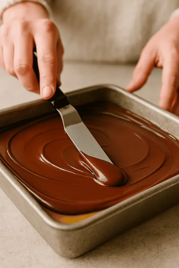 - Chill again for 20-30 minutes until chocolate is firm but not hard.