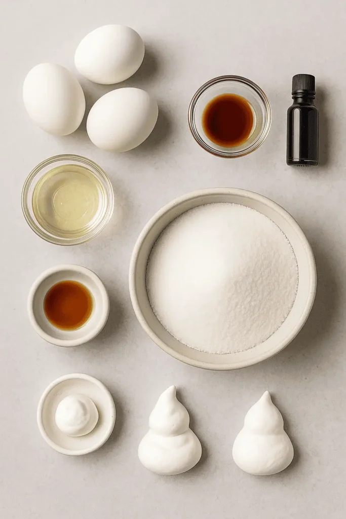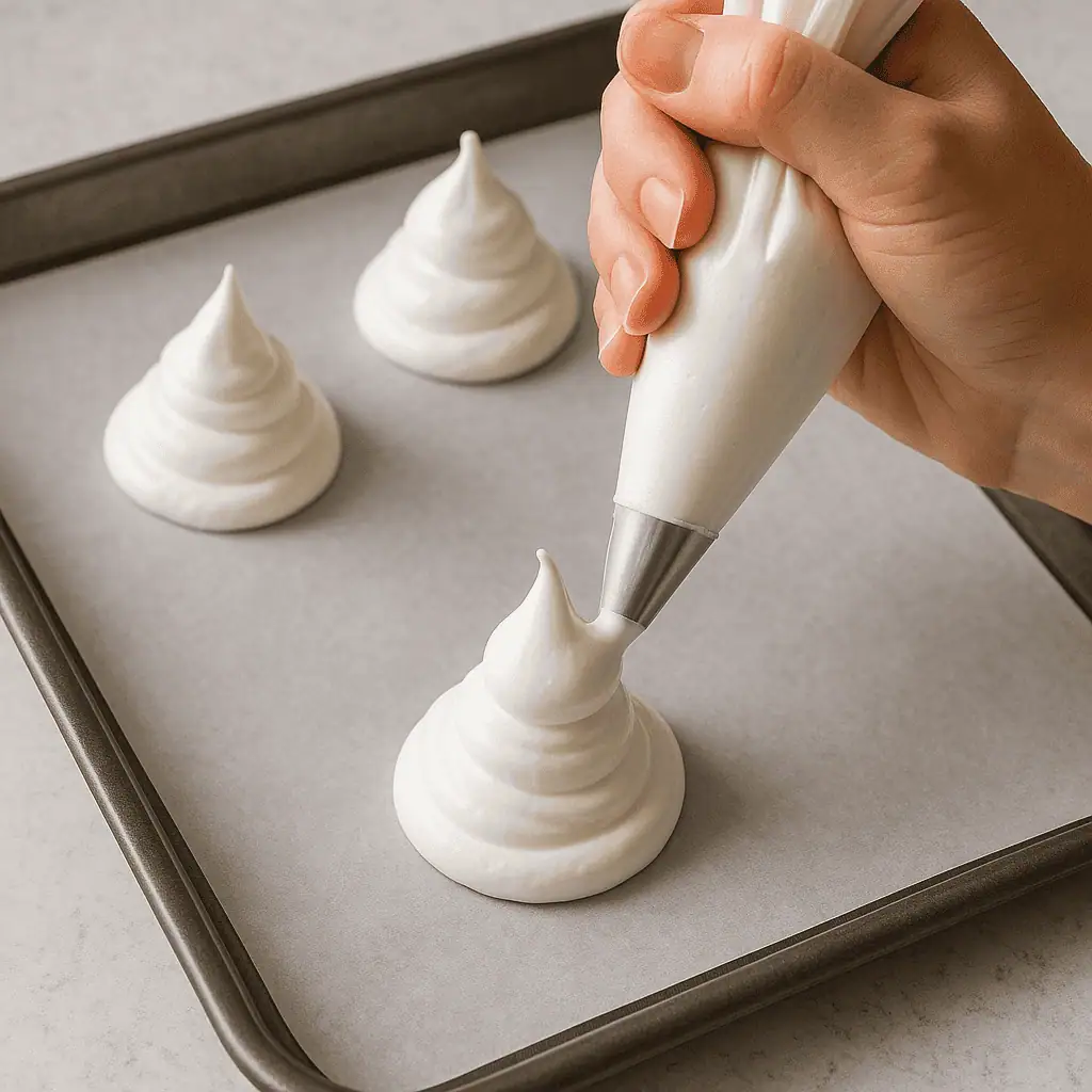 - 6️⃣ Bake for 1.5 hours, then turn off oven and let meringues cool completely inside (to avoid cracking).