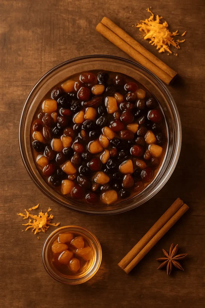 - ✔️ Soak your fruit overnight for the best flavor and texture — rum, brandy, or even strong tea work beautifully.