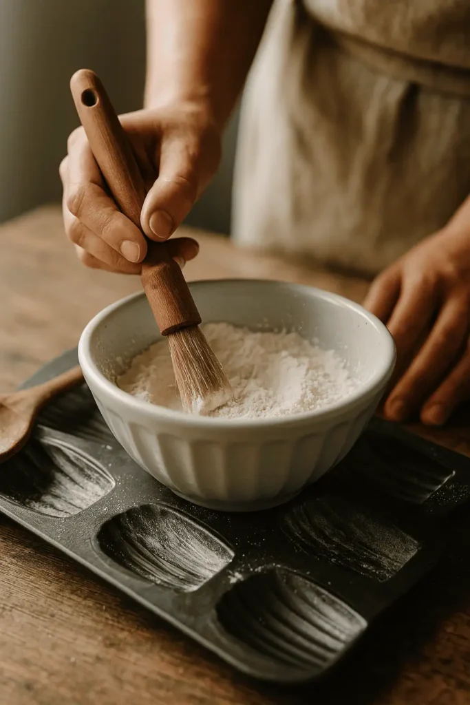 5️⃣ Preheat oven to 375°F (190°C). Brush your madeleine pan with melted butter and dust with flour; tap out excess.