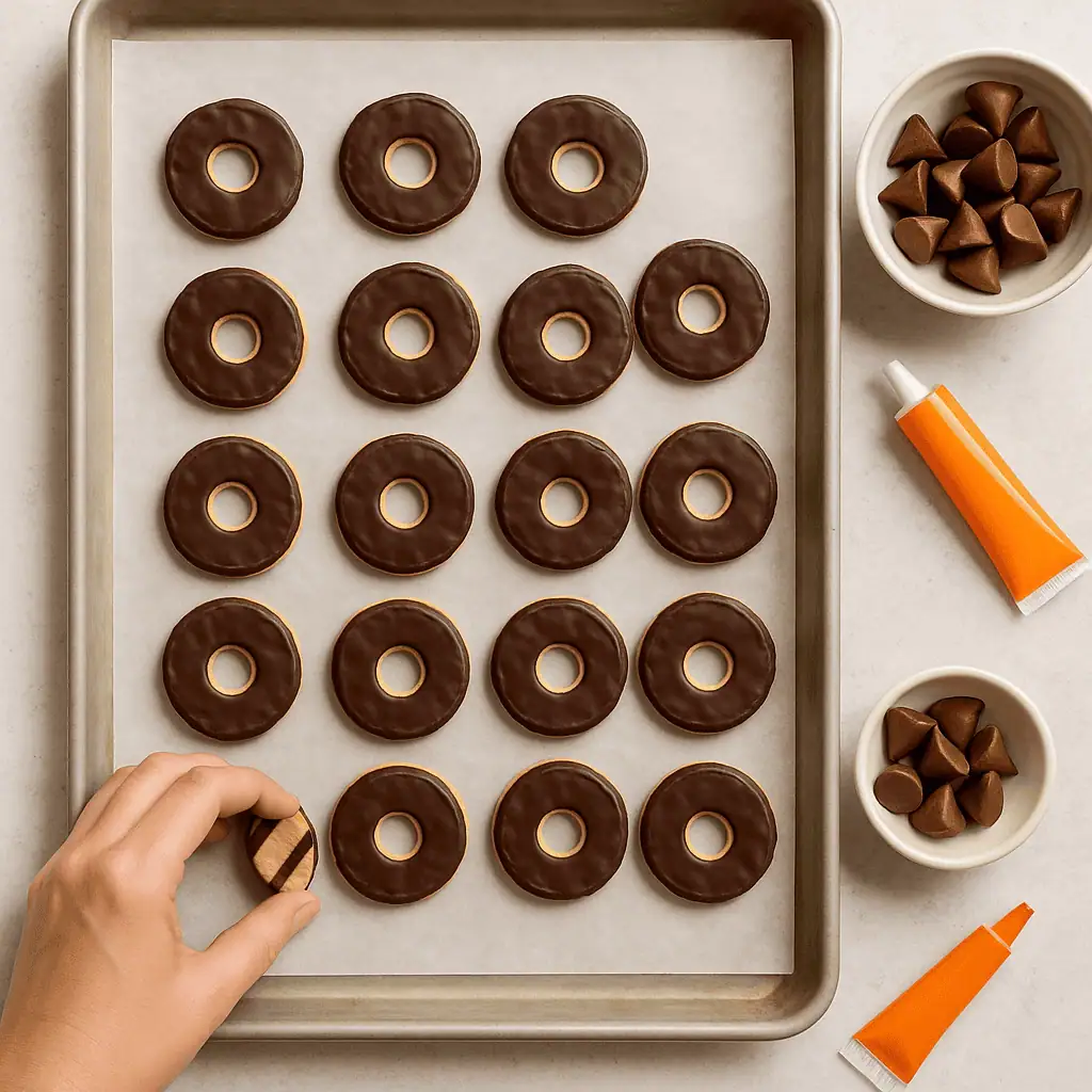 - Place the cookies chocolate-side up on a tray or work surface.