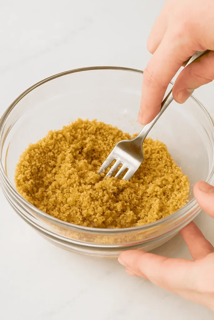- In a small bowl, mix the graham cracker crumbs, sugar, and melted butter until the crumbs are evenly coated.
