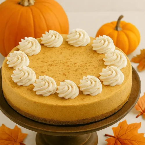 Top your cheesecake with piped swirls of whipped cream and a light dusting of cinnamon or nutmeg. For extra flair, garnish with mini pumpkin candies or a drizzle of caramel sauce. Serve on a rustic cake stand or individual plates with a cinnamon stick for added charm!