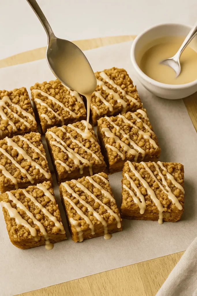 - Whisk together powdered sugar and maple syrup until smooth. Drizzle over cooled bars.