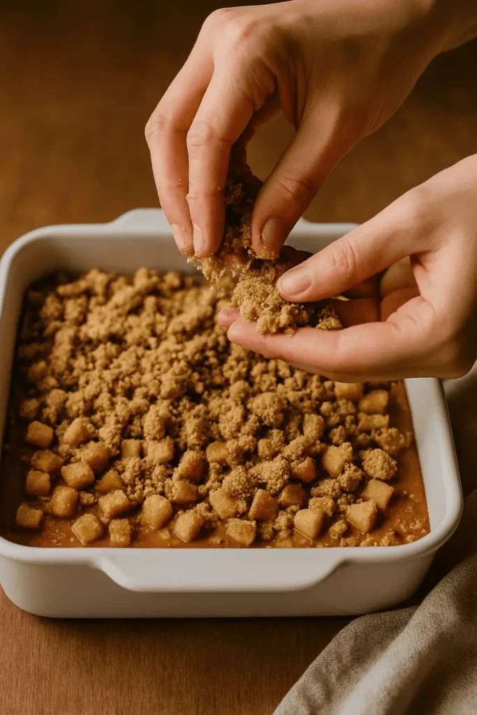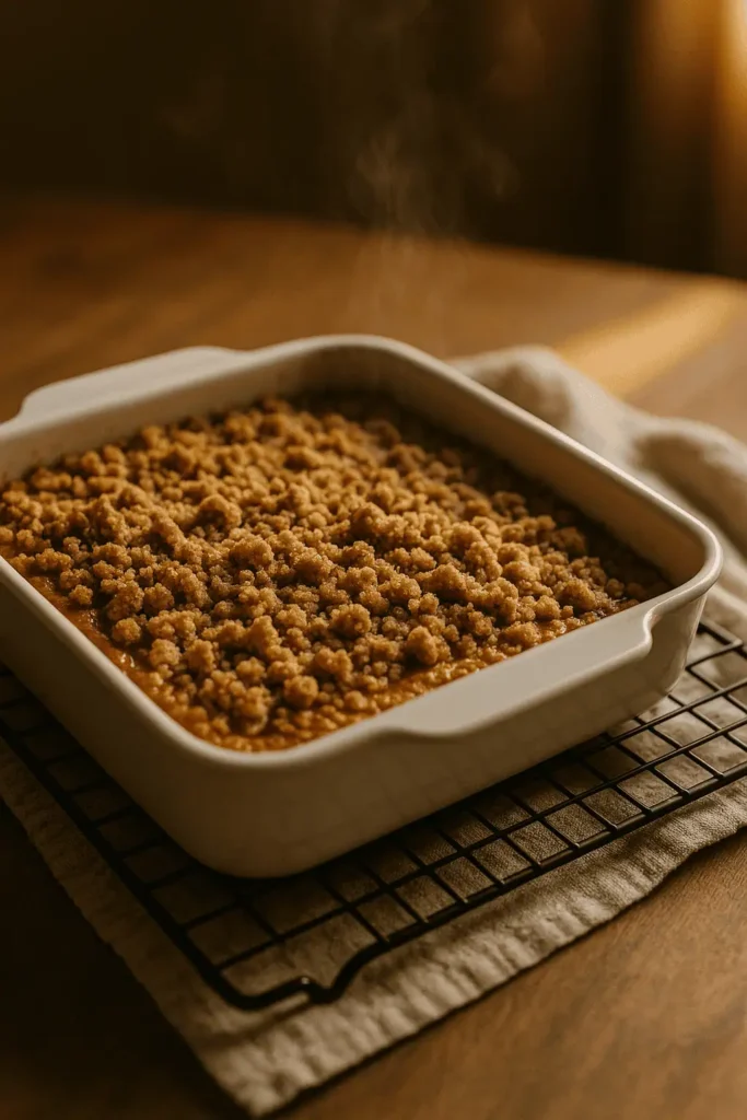 Bake for 40β45 minutes, until streusel is golden and a toothpick comes out clean from the center.