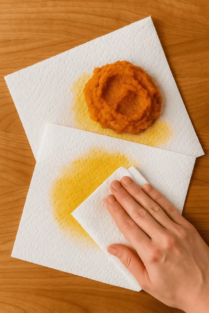 - Pumpkin: Do not skip blotting your pumpkin purΓ©e! Lay it on paper towels and gently press out moisture.