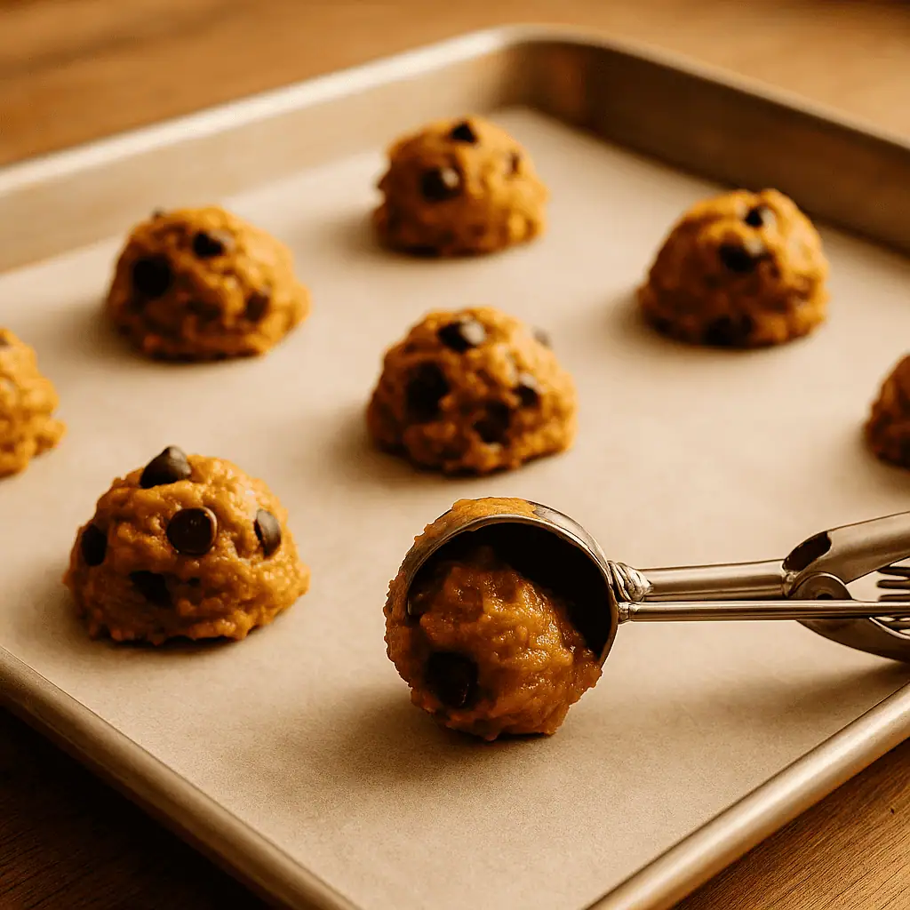 5οΈβ£ Preheat oven to 350Β°F. Line baking sheets with parchment. Scoop dough into 1.5β2 tablespoon balls and place a couple inches apart.