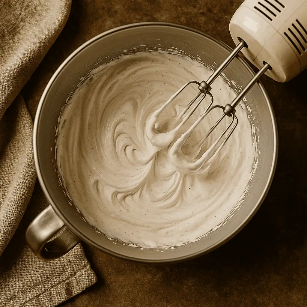 7. Frosting: Whip the cream, powdered sugar, cinnamon, and vanilla to soft peaks. Pipe or spoon generously onto each cupcake.
