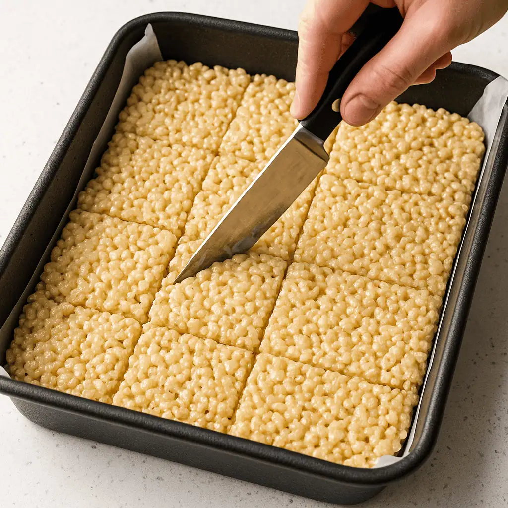 - Gentle Press: Donβt press the mixture too firmly into the pan to keep the treats light and chewy.