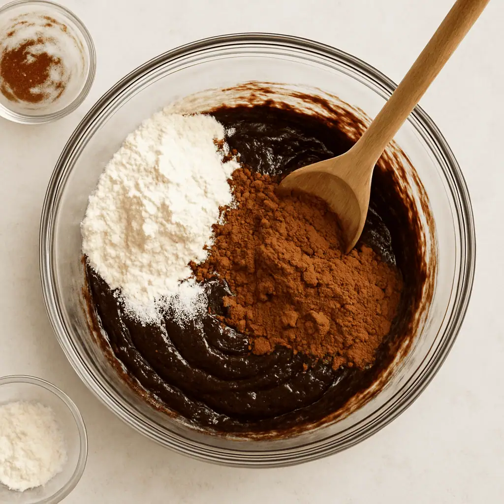 - Add dry ingredients: Gently stir in flour, cocoa powder, and salt until just combined.