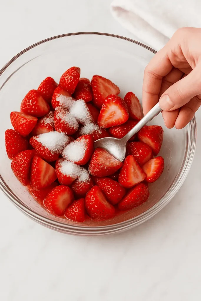 1. Prepare strawberries: In a medium bowl, combine sliced strawberries and sugar. Stir and let sit for at least 30 minutes to release juices.
